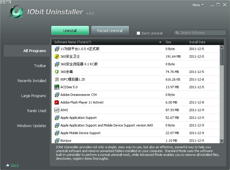 Iobit Uninstaller(移除或卸載程序工具)V2.2 綠色版|